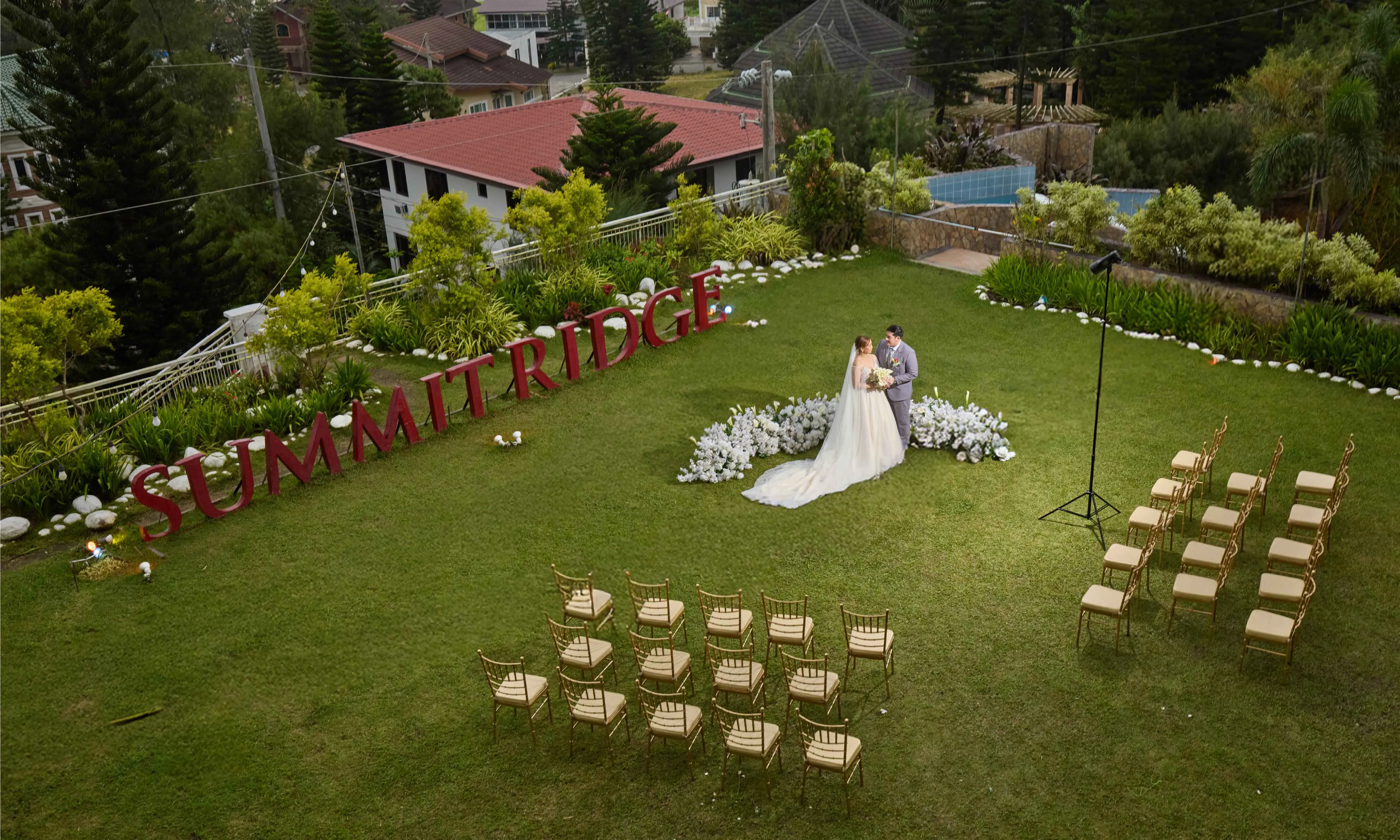 Our Events Lawn and Garden provide a picturesque outdoor setting tailored for versatility. Overlooking the pool, this lush green space is perfect for romantic, intimate weddings.