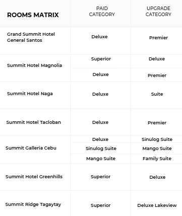 4. For reservations, contact: 0998 888 7788 | 0998 997 2080 | +632 8 397 0111 | reservations@summithotels.ph